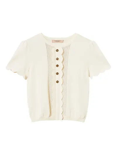 off-white scalloped trim button fastening short sleeves oval 't' buttons