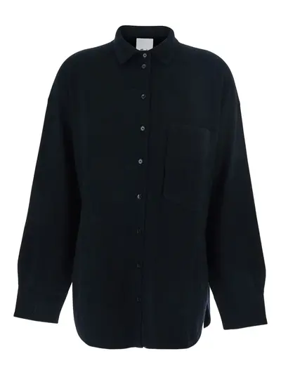 black chest pocket button fastening long sleeves buttoned cuffs collared