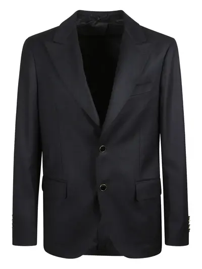 black button fastening flap pockets notched lapels long sleeves buttoned cuffs