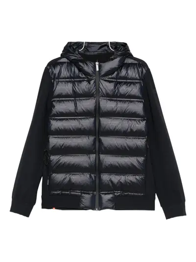 black padded panel front zip fastening drawstring hood long sleeves ribbed cuffs