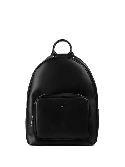 black leather construction top handle front zip pocket adjustable shoulder straps zip fastening