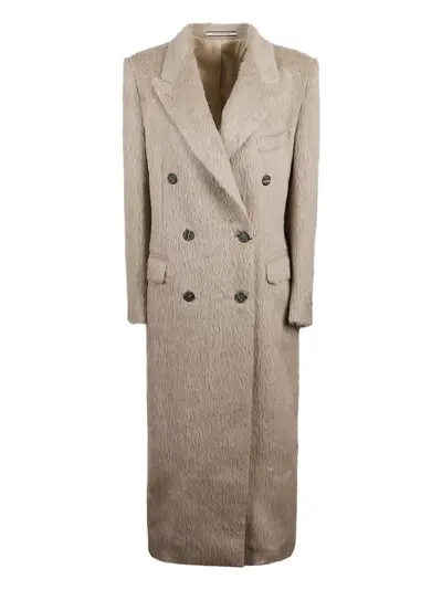 beige alpaca wool double-breasted button closure patch pockets long sleeves