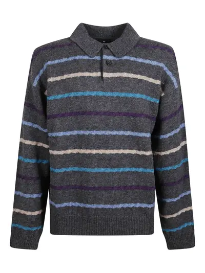 black melange striped polo collar button fastening
