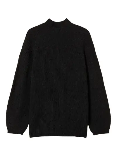 black wool blend oval t detail turtle neck knitted