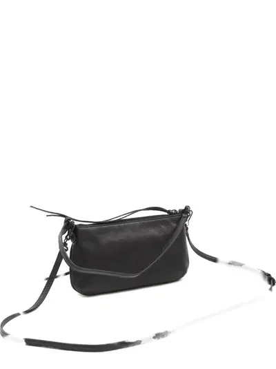 black lambskin adjustable removable shoulder strap brass hardware front zip pocket knotted leather pull