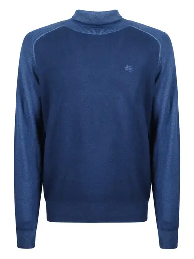blue turtleneck long sleeves tonal logo detail knitted construction ribbed hem