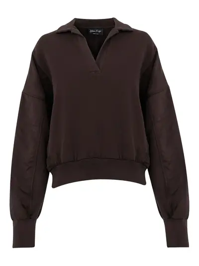 brown v-neck long sleeves elasticated hem polo collar panelled sleeves