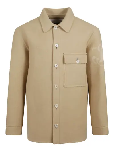 beige chest pocket button fastening long sleeves buttoned cuffs logo detail