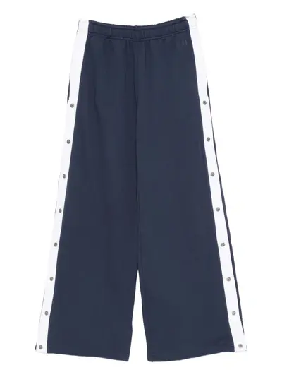 blue cotton elasticated waistband embroidered logo wide leg