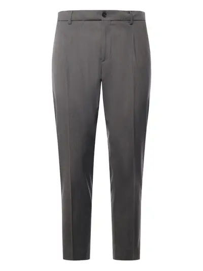 grey button fastening belt loops welt pockets pleated front straight leg