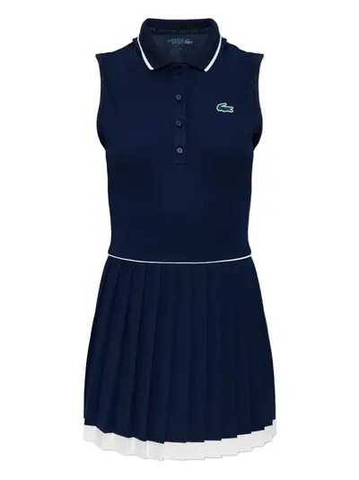 navy blue polo collar button fastening logo embroidered pleated skirt contrast trim