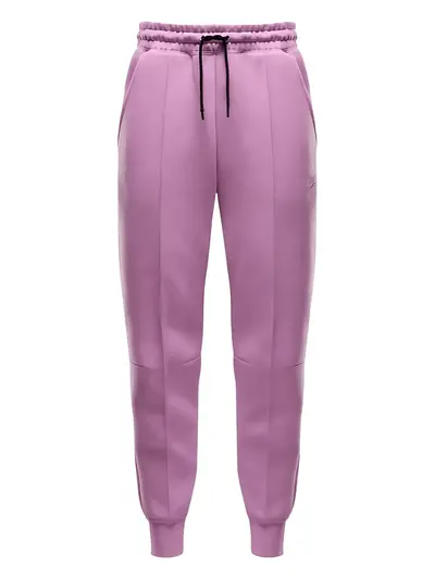 pink elasticated drawstring waistband side slash pockets logo print ribbed ankles