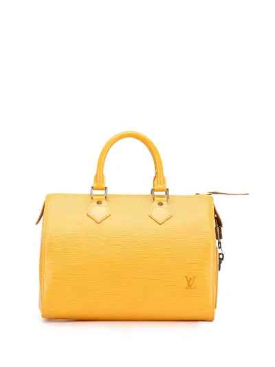 epi leather body rolled handles top zip closure exterior side slip pocket interior slip pocket yellow Serial Number: SP0936 Inclusions: padlock, key. Condition: GOOD. This previously owned and used item is in good condition with minimal signs of use. This may include fading of material or plating and scratches. Due to the exclusivity of this item and its limited availability, processing and delivery might take longer than usual. Declared Damages: Handle/Strap Feature(s) Minor Loose Stitching. Interior Lining Feature(s) Minor Loose Stitching. Corners Feature(s) Moderate Wear. Please refer to the photos on this product page for a detailed view of the item, including any damages declared.