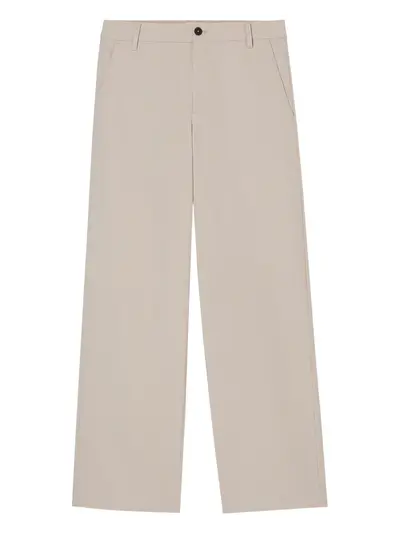 beige button and zip front fastening side slit pockets belt loops rear welt pocket