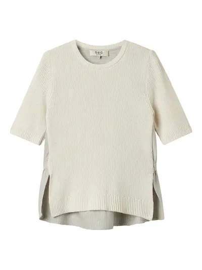 cream striped panel appliqué detailing round neck short sleeves side splits