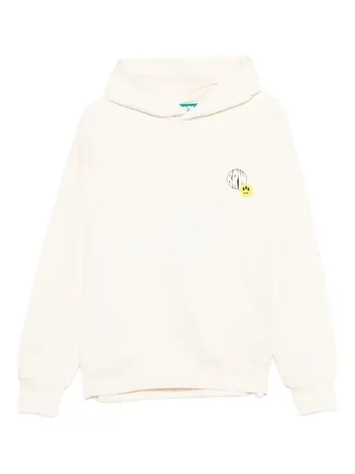 beige graphic print to the rear drawstring hood long sleeves front pouch pocket ribbed hem and cuffs
