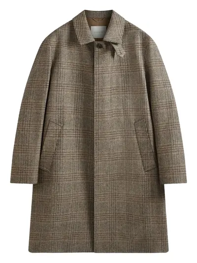 brown wool checked pattern button fastening notched lapels front pockets long sleeves