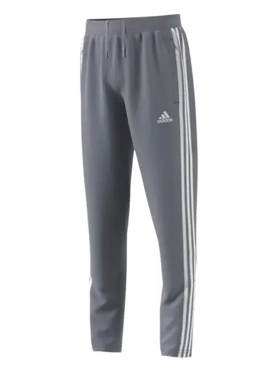 medium grey elasticated waistband with internal drawstring signature monofilament side-stripe detail two side zip-fastening pockets signature trefoil logo detail