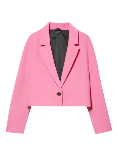 pink cropped single button fastening notched lapel long sleeves straight hem