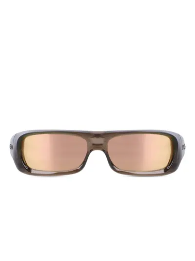 brown rectangle frame tinted lenses logo detail nose pads These glasses come with a protective case.