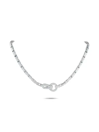 silver-tone 18k white gold pavé-set round-cut diamonds clasp embellishment 15 cm long link chain gift box Condition: EXCELLENT. This previously owned item is in near-perfect condition with no signs of damage or use. Your purchase will arrive with a gift box. Normal everyday use and external agents may reduce the lustre of gemstones and gold surfaces. To maintain, use specific, non-abrasive products specially meant for cleaning jewellery.