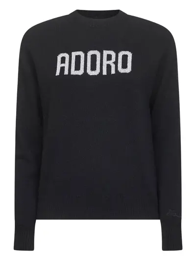 black crew neck long sleeves jacquard lettering ribbed cuffs and hem