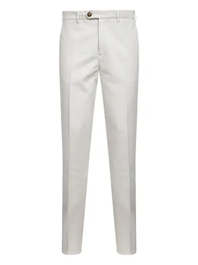 light beige cotton belt loops side slit pockets back buttoned welt pockets pressed crease front button closure