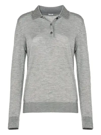 grey beaded embellishment button fastening long sleeves ribbed hem ribbed cuffs