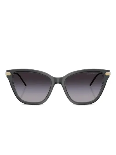 black and gold cat-eye frame nose pads gradient lenses gold-tone detail