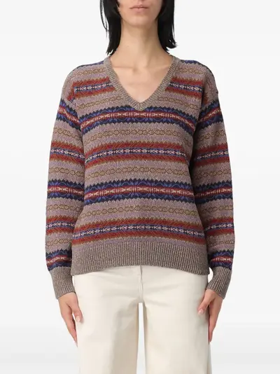 brown stripe detailing fair isle motif v-neck long sleeves ribbed cuffs and hem