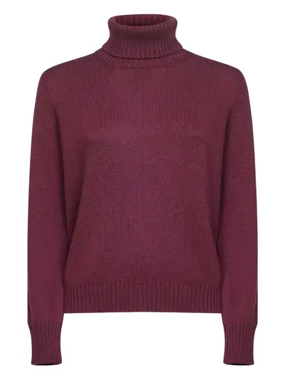 burgundy ribbed turtleneck collar long sleeves ribbed cuffs and hem