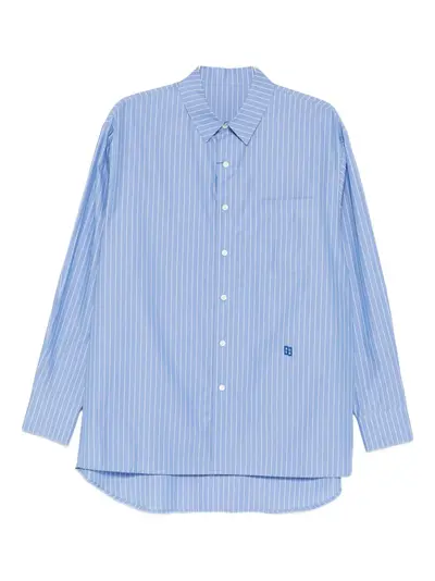 light blue striped chest patch pocket front button fastening long sleeves curved hem