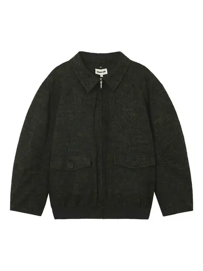 hunter green point collar front zip fastening two front buttoned pockets ribbed hem long sleeves