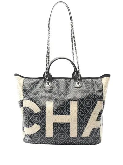 printed coated canvas body flat leather handles leather woven chain straps with leather shoulder guards open top interior zip pockets white Serial Number: 25618773 This item has no inclusions. Condition: GOOD. This previously owned and used item is in good condition with minimal signs of use. This may include fading of material or plating and scratches. Due to the exclusivity of this item and its limited availability, processing and delivery might take longer than usual. Declared Damages: Interior Lining Feature(s) Moderate Stains. Please refer to the photos on this product page for a detailed view of the item, including any damages declared.