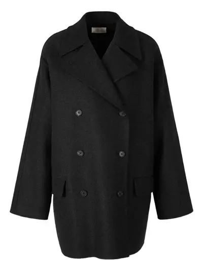 dark grey wool blend high collar side pockets hidden front closure double-breasted