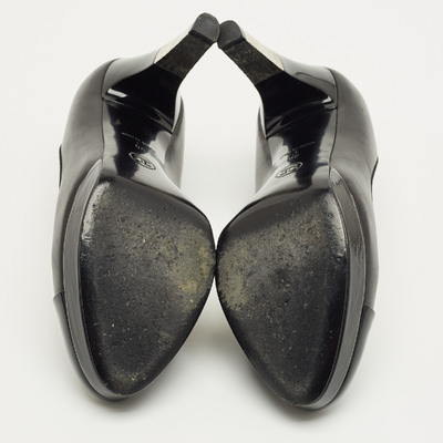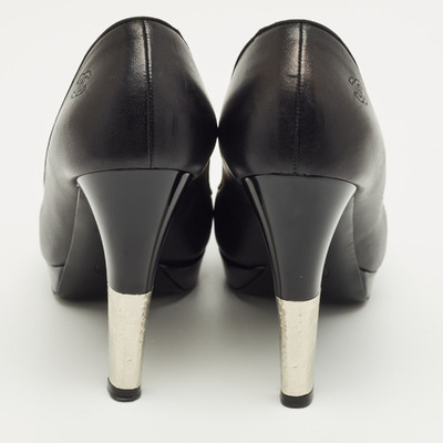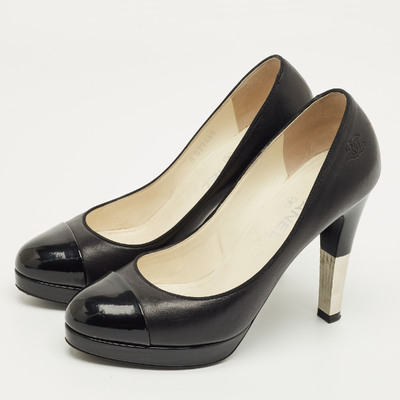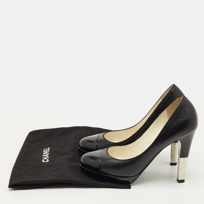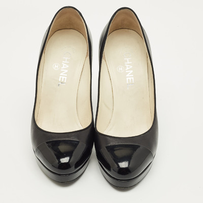 Chanel Black Leather and Patent Leather CC Cap Toe Platform Pumps Size 38 1232628 (чёрный, lpn31076205)