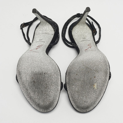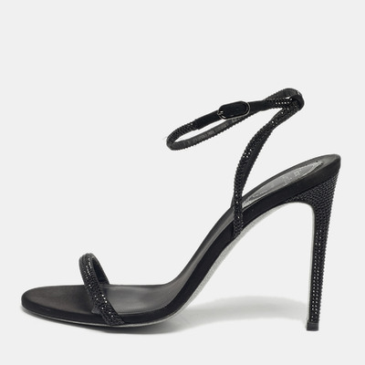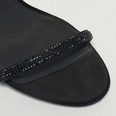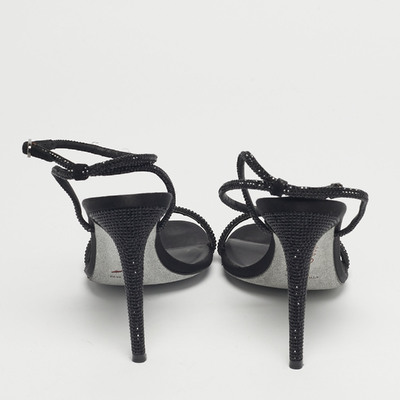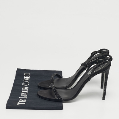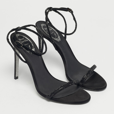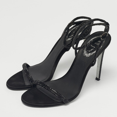 René Caovilla transforms satin into a canvas of sparkle with these black ankle wrap sandals. Crystals trace the delicate straps, winding around the ankle to create a sense of movement and drama. Perfect for evenings that call for glamour and meticulous craftsmanship.