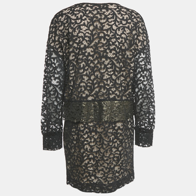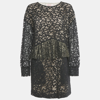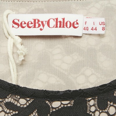 This See by Chloé short dress blends femininity with modern structure. Designed in black lace with frilled accents, it plays with texture and transparency, balancing romance and edge. The refined cut and soft silhouette make it ideal for both cocktail events and chic daytime outings.