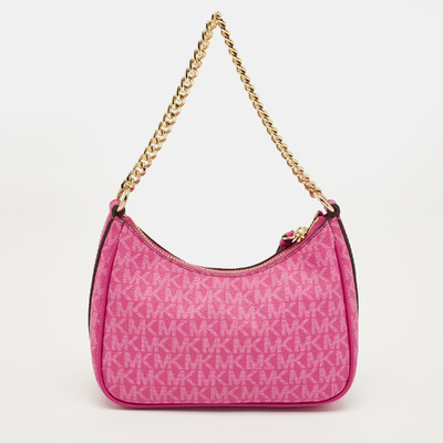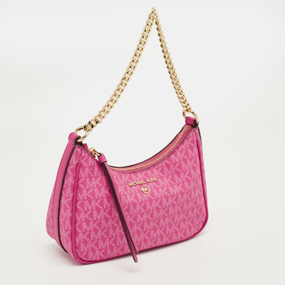 A petite declaration of style, this bag pairs Michael Kors’ signature canvas with soft pink leather, carrying essentials with ease. Gold tone hardware adds a stunning finish.