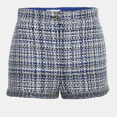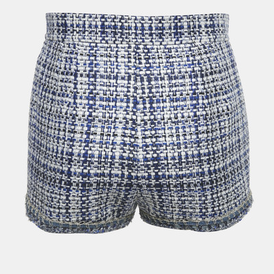 Chanel Blue /White Tweed Frayed Hem Mini Shorts M 1233999 (голубой, lpn31076262)