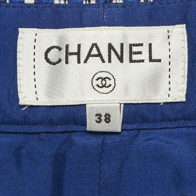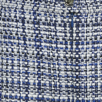 Crafted from signature tweed, these Chanel mini shorts blend heritage craftsmanship with youthful flair. The blue and white palette and frayed hems offer textural contrast, while the tailored fit channels contemporary Parisian ease.