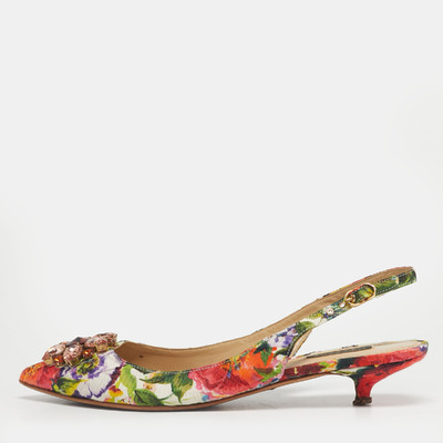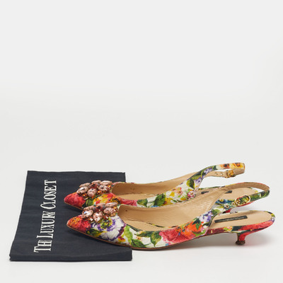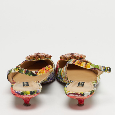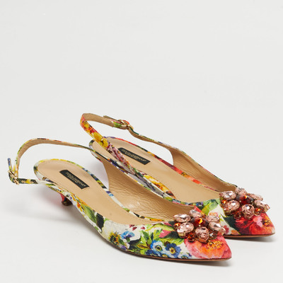 Romantic and luxurious, these slingback pumps from Dolce and Gabbana embody the house’s love affair with dreamy designs. Crafted from Brocade fabric alight with blooming tropical roses and pink crystal blooms, the pair feels like a garden captured in motion.