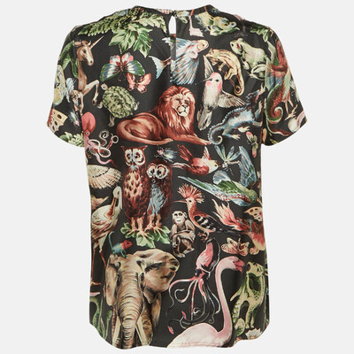 Valentino’s silk top features a whimsical animal fantasy print that brings poetic artistry to everyday wear. The lightweight silk drapes elegantly, while the dark palette grounds the imaginative design — a standout piece from the house’s creative storytelling.