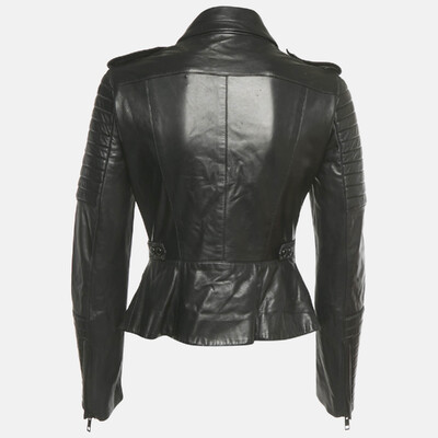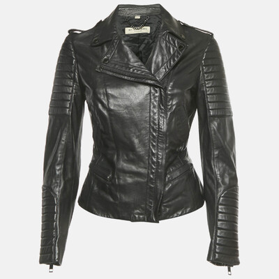 Burberry reimagines an icon with this supple black leather biker jacket. Detailed with quilted shoulders, polished hardware, and a fitted silhouette, it embodies British cool with refined craftsmanship. A wardrobe essential that fuses modern edge with enduring luxury.