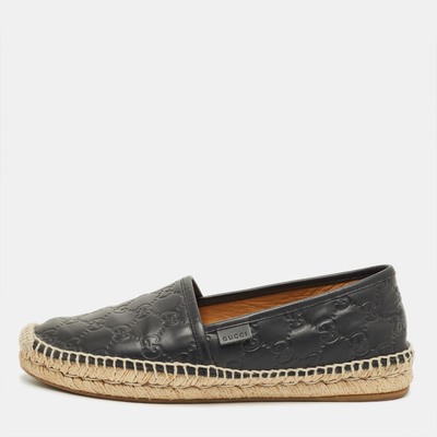 Gucci Black Leather Guccissima Espadrille Flats Size 38.5 1234006 (чёрный, lpn31076302)