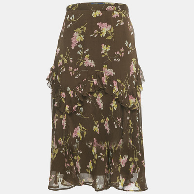 Polo Ralph Lauren Brown Floral Print Chiffon Ruffled Midi Skirt S 1233732 (коричневый, lpn31076327)