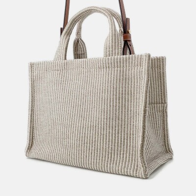 Sleek and grounded, this gray and brown variation of the Small Kabas speaks to modern sophistication with utilitarian grace. The neutral canvas body is complemented by rich leather trims, offering a clean lined silhouette built for movement and minimalism in equal measure.