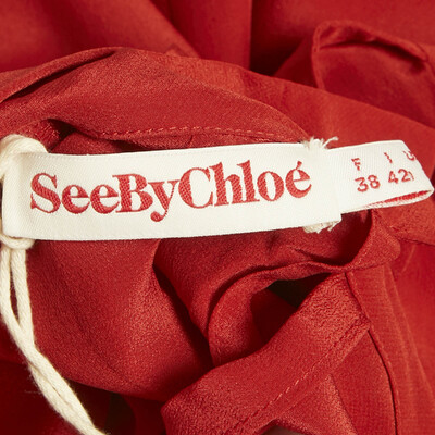 See By Chloe Red Crepe Silk and Crepe Short Dress M 1233646 (красный, lpn31076375)
