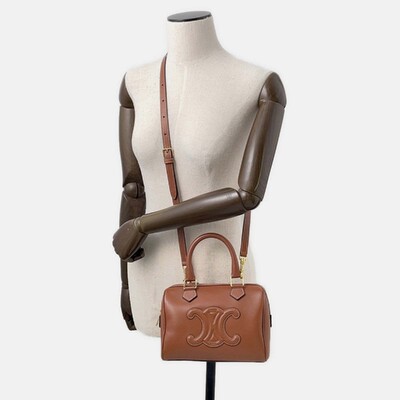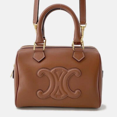 Celine Triomphe Boston Tan Leather Small 2-Way Handbag 1233576 (lpn31076382)
