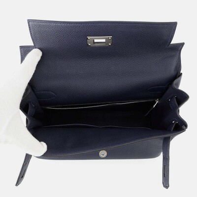 Renowned for its iconic shape, Hermes Kelly Retourne in Blue Nuit Togo leather conveys quiet luxury. Its structured form, deep color, and timeless elegance make it a coveted piece for those who appreciate meticulous craftsmanship.